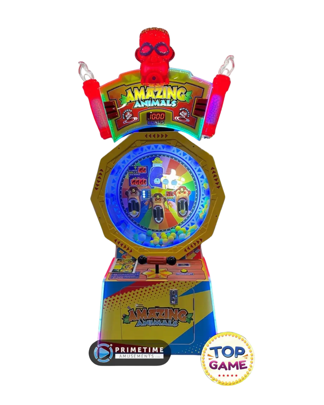 Este é um jogo de queda de bola exclusivo com quatro alvos. O jogador gira a alavanca do campo de jogo para a esquerda ou direita para fazer a banheira rolar no sentido horário ou anti-horário. Quando as bolas estiverem no topo, o jogador deve tentar parar ou reverter o giro das banheiras para que elas caiam em um dos vários slots. Existem três slots inferiores e um slot maior que parece um braço (localizado acima dos três alvos de macaco). O alvo superior maior é para bolas grandes que estão na mistura – os jogadores vão querer se concentrar em colocá-las no slot, pois uma vez que a câmara esteja cheia (funcionando como uma trava de bola no pinball), ela recompensa o pagamento do bilhete de bônus. Caso contrário, bolas pequenas caem por ali e podem cair nos alvos de macaco, para recompensas de bilhetes menores. É um espetáculo divertido de assistir, mas ainda mais agradável de jogar!