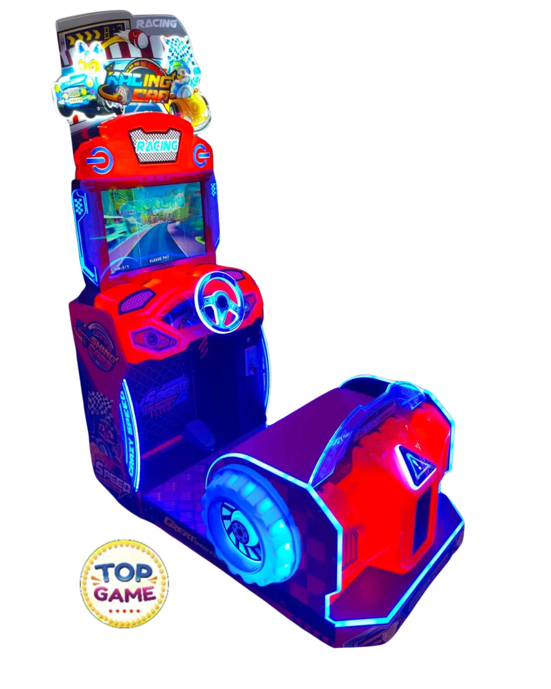 A Flashing Car é uma máquina de arcade divertida e dinâmica, perfeita para quem ama velocidade e desafios! Com um design colorido e iluminado por LEDs, essa arcade atrai jogadores de todas as idades e é ideal para shoppings, buffets, parques indoor e fliperamas.