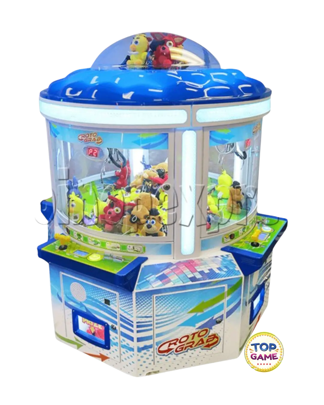 Os jogadores controlam uma garra mecânica giratória e precisam posicioná-la corretamente para agarrar prêmios, como pelúcias, brinquedos e brindes. O diferencial da Roto Grab é a sua movimentação rotacional, que adiciona um desafio extra e torna cada tentativa ainda mais empolgante!